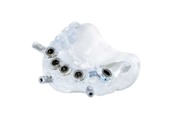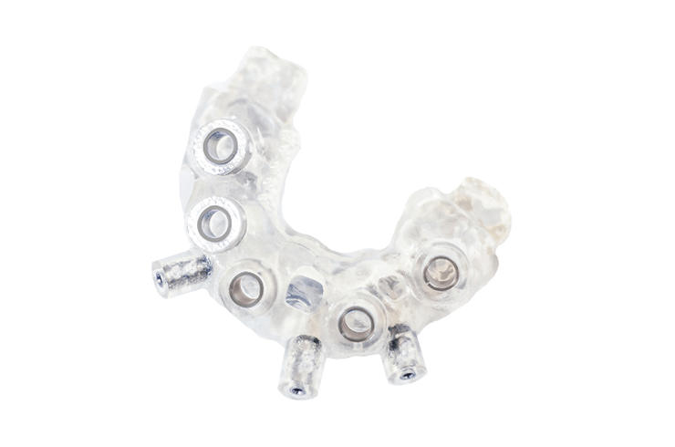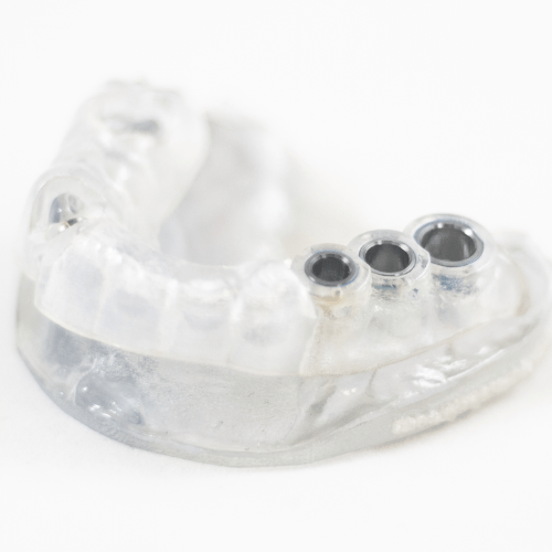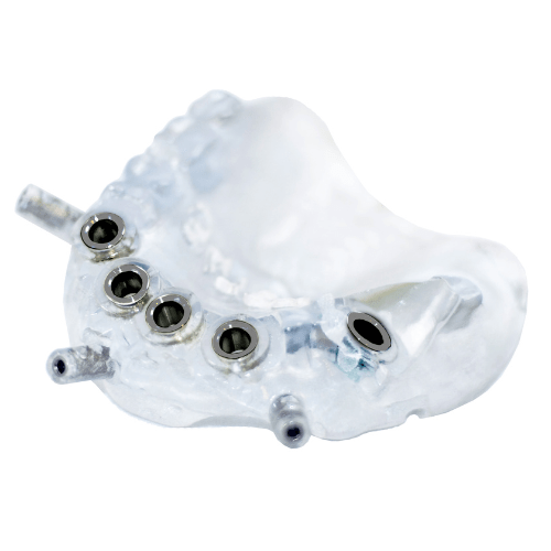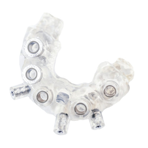 A stackable guide is a system of modular, multi-component surgical guides used in implant dentistry for complex full-arch restorations. Rather than using a single-piece guide, the dentist “stacks” or layers different components during the surgery to perform sequential procedures, such as bone reduction, implant placement, and provisional prosthesis delivery.