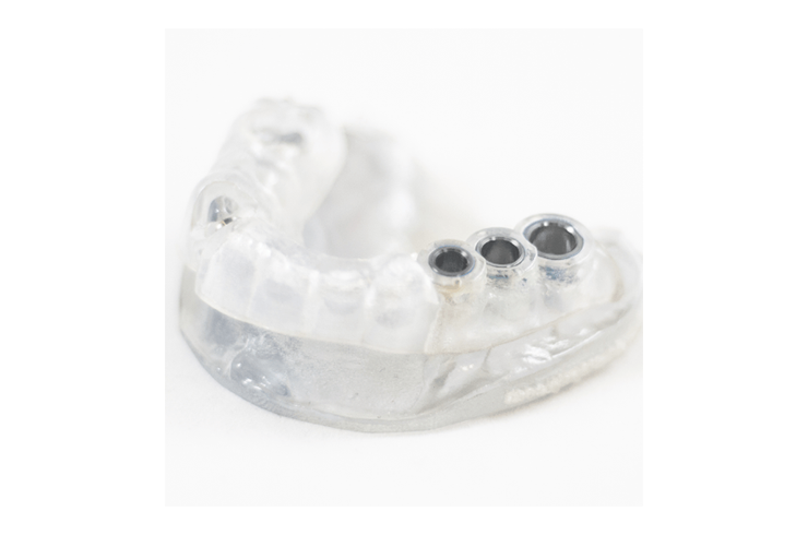 Usually fabricated for single implant placement or partially edentulous patients. Easily reproducible landmarks (teeth) are used for retention and support.